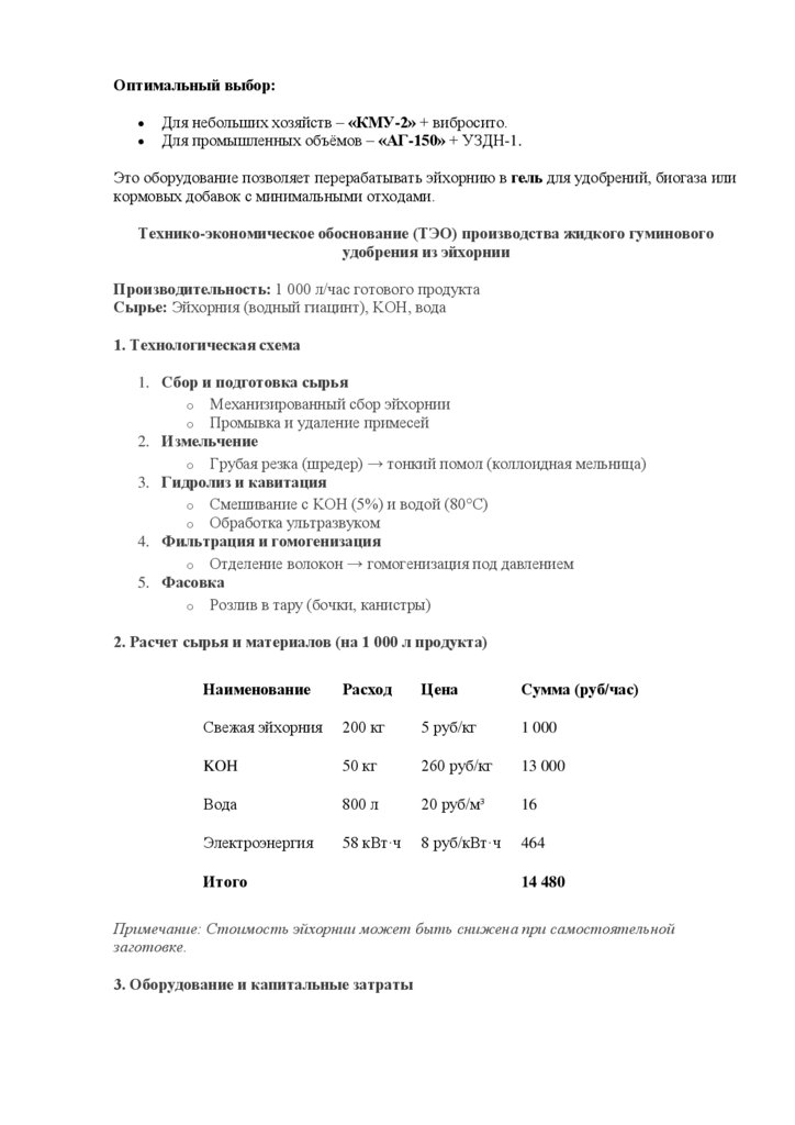 3. Оборудование и капитальные затраты