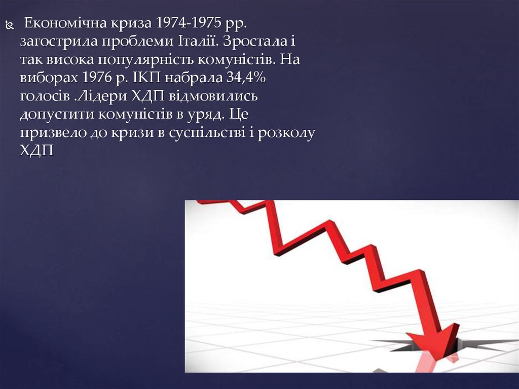 Економічна криза 1974-1975 рр.загострила проблеми Італії. Зростала і