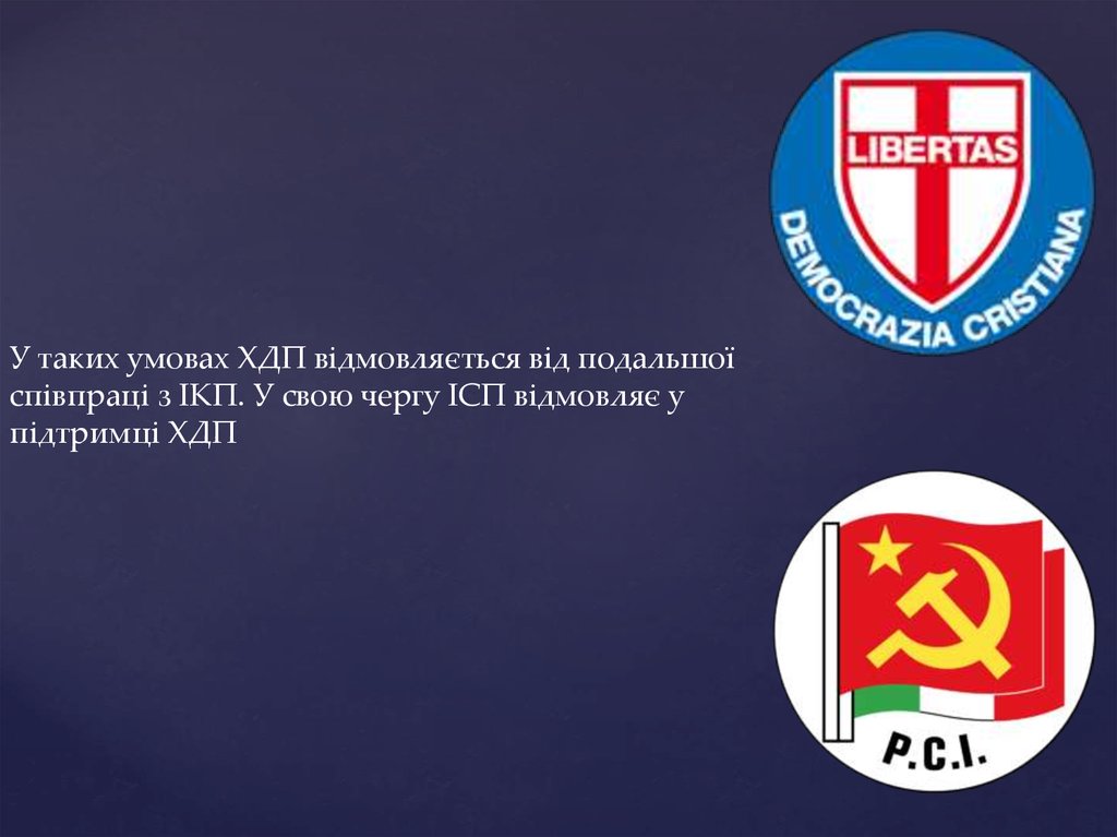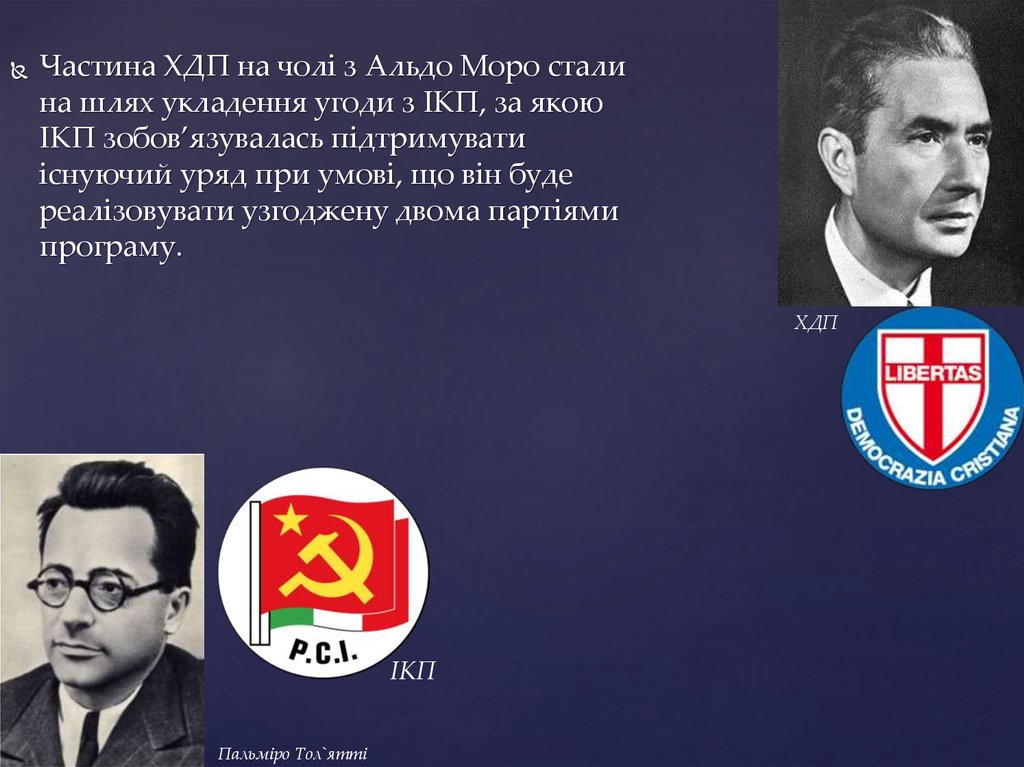 Частина ХДП на чолі з Альдо Моро сталина шлях укладення угоди з ІКП, за якою