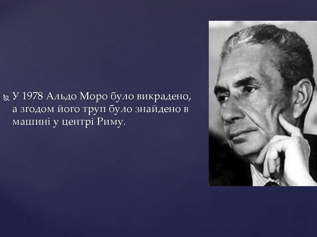 У 1978 Альдо Моро було викрадено,а згодом його труп було знайдено в