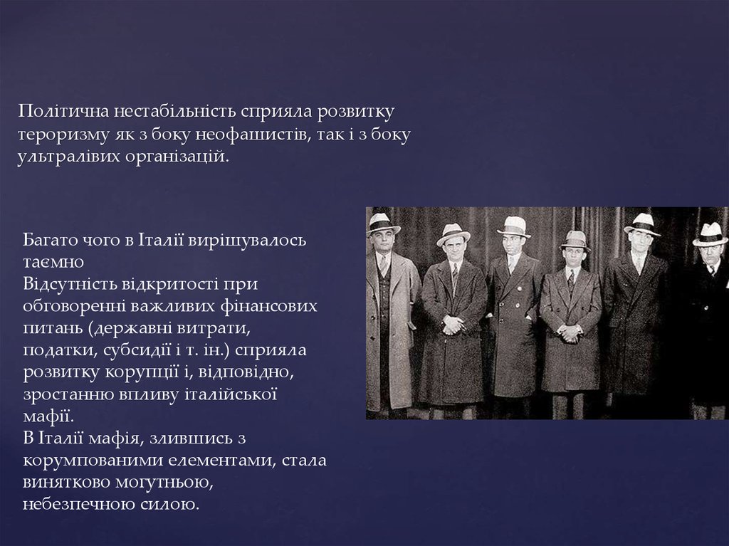 Політична нестабільність сприяла розвиткутероризму як з боку неофашистів, так і з боку