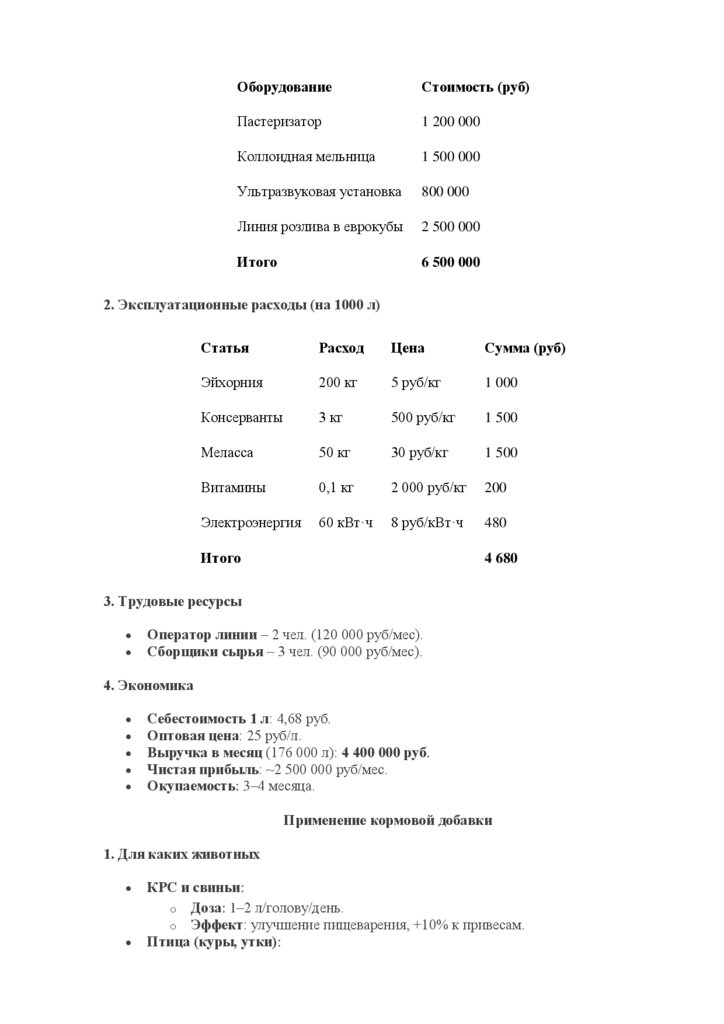 Технико-экономическое обоснование (ТЭО) на 1000 л/ч