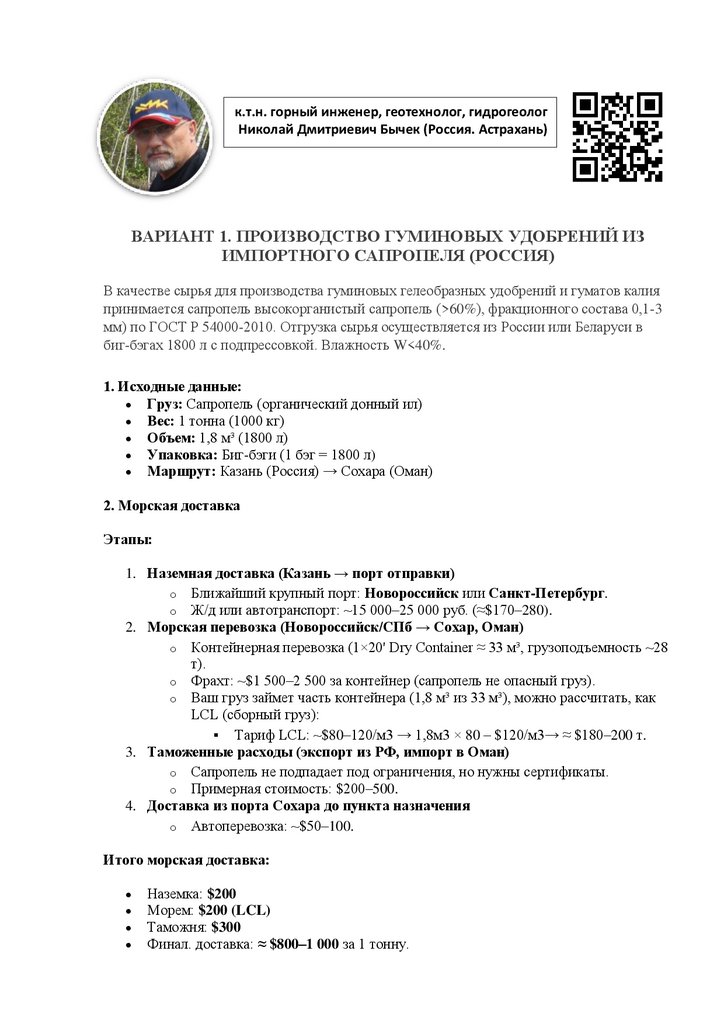 o Фрахт: ~$1 500–2 500 за контейнер (сапропель не опасный груз).