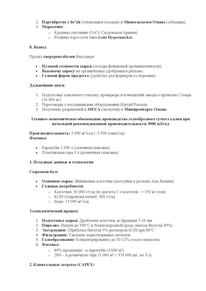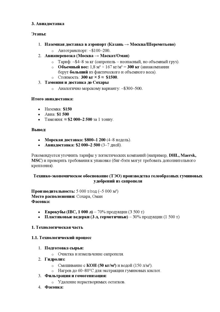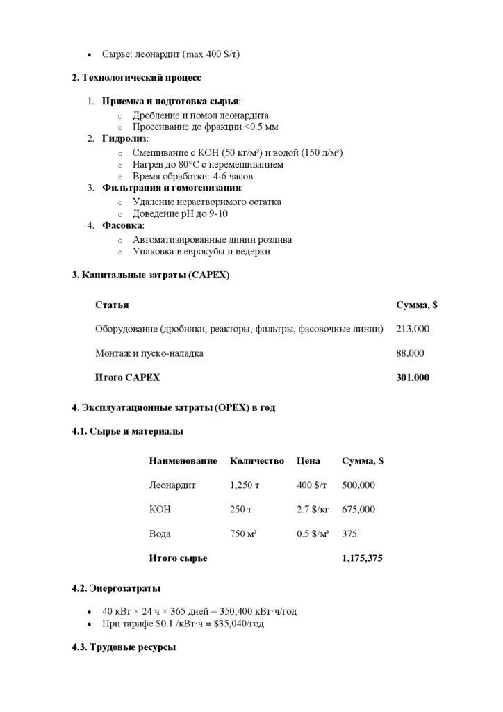 Технико-экономическое обоснование (ТЭО) производства гелеобразных гуминовых