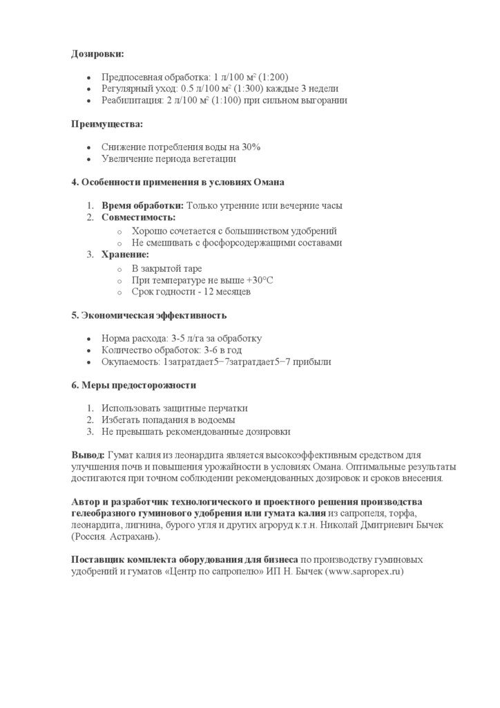 Применение гелеобразного гумата калия из леонардита в сельском хозяйстве Омана