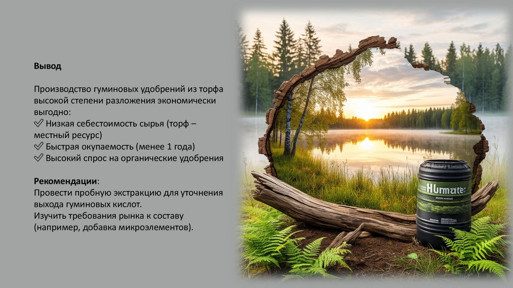 ВыводПроизводство гуминовых удобрений из торфа