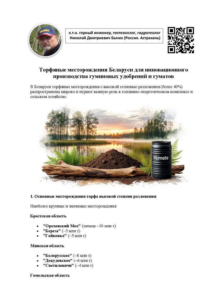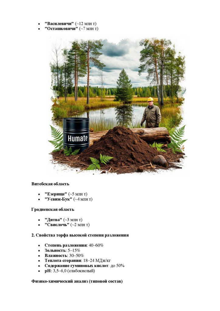 Торфяные месторождения Беларуси для инновационного производства гуминовых удобрений и гуматов