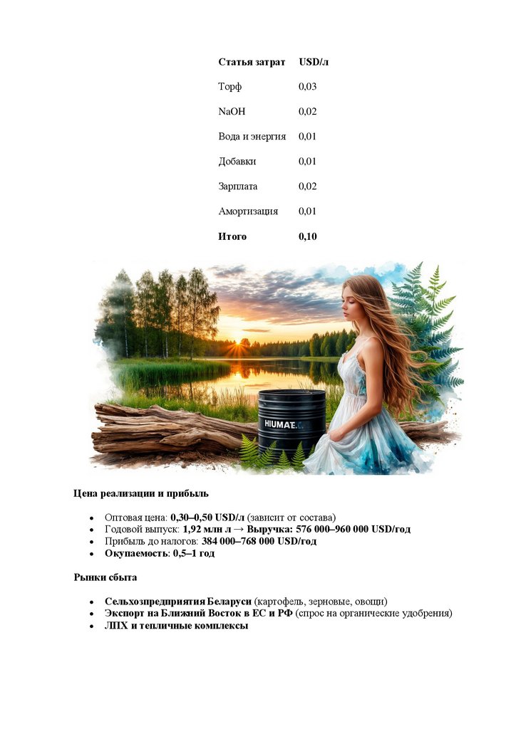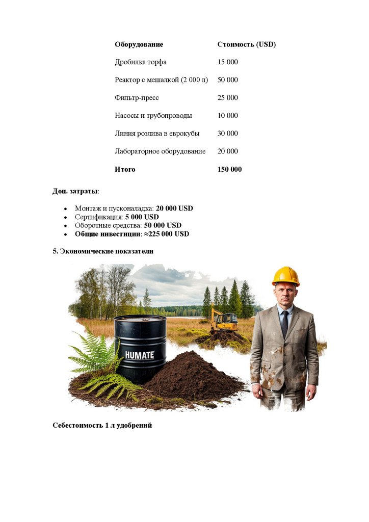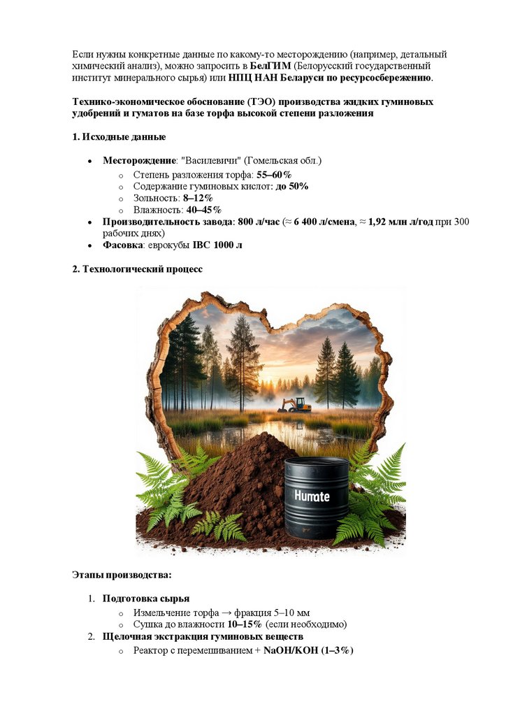 Технико-экономическое обоснование (ТЭО) производства жидких гуминовых