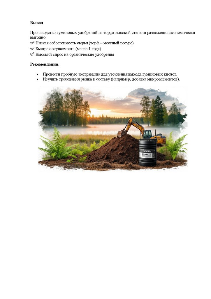 ВыводПроизводство гуминовых удобрений из торфа высокой степени разложения экономически