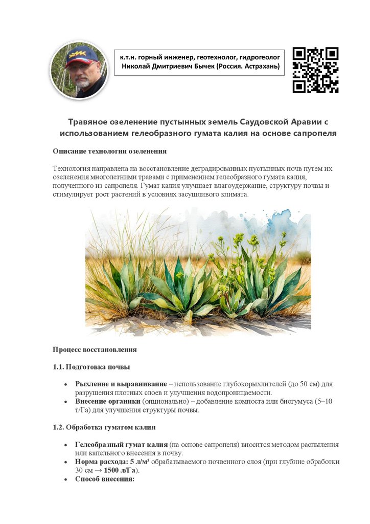 Травяное озеленение пустынных земель Саудовской Аравии с использованием гелеобразного гумата калия на основе сапропеля