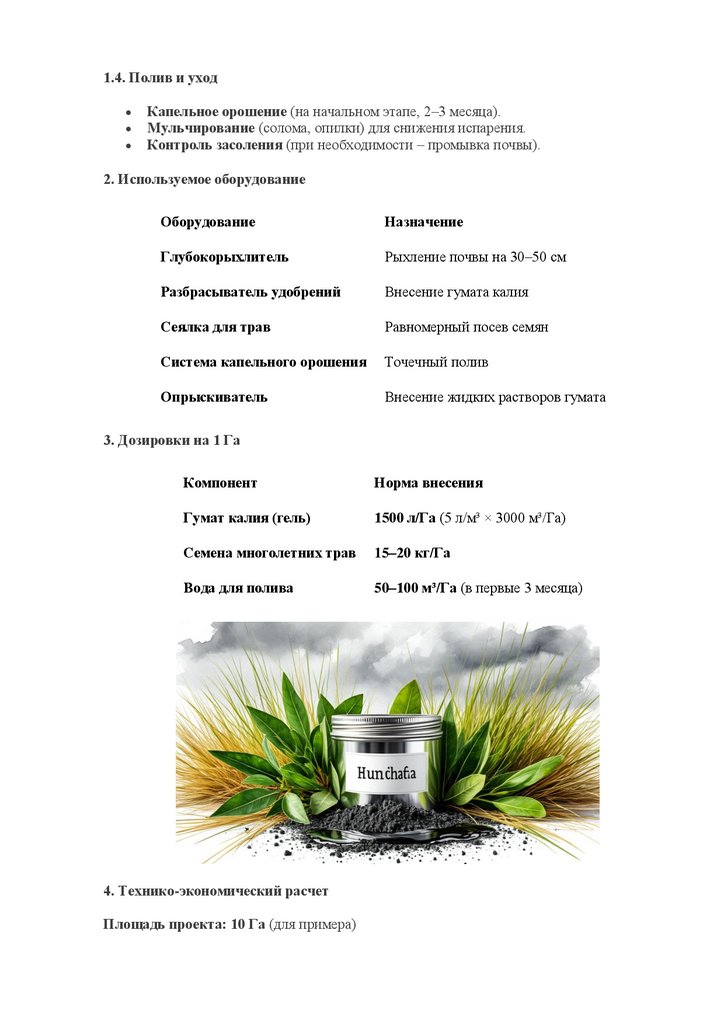 Провести пилотный проект на 1–2 Га для уточнения норм расхода.
