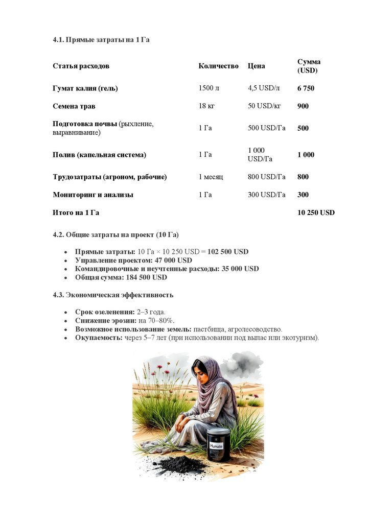 растительного покрова. Проект окупается за счет долгосрочного улучшения экологии и