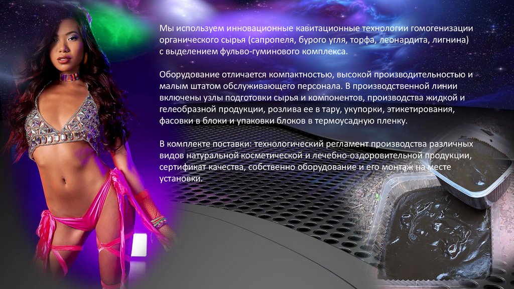 Мы используем инновационные кавитационные технологии гомогенизацииорганического сырья (сапропеля, бурого угля, торфа, леонардита, лигнина)