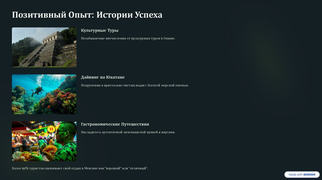 Более 90% туристов оценивают свой отдых в Мексике как "хороший" или "отличный".