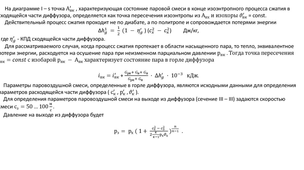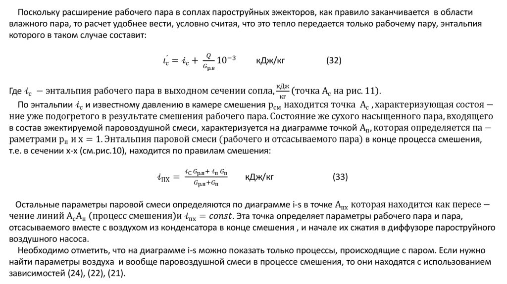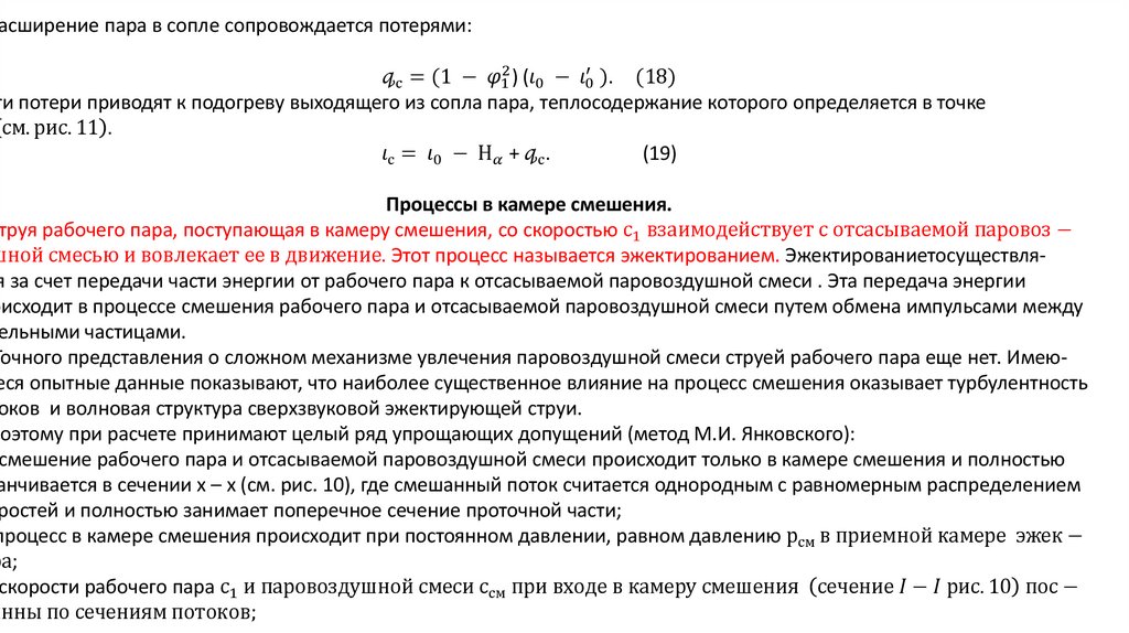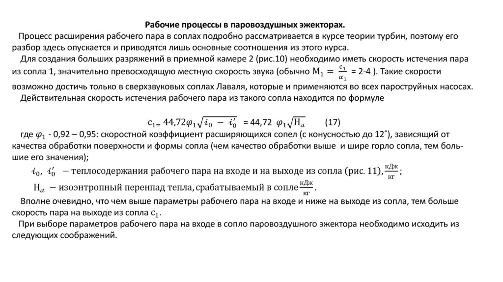 Рабочие процессы в паровоздушных эжекторах.Процесс расширения рабочего пара в соплах подробно рассматривается в курсе теории турбин, поэтому его