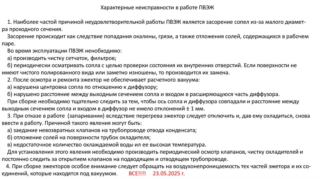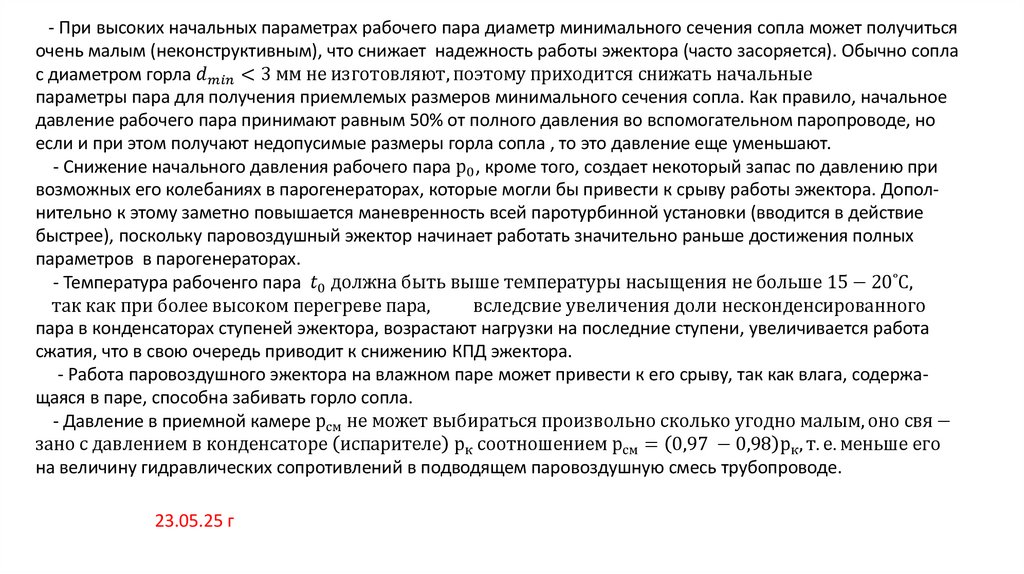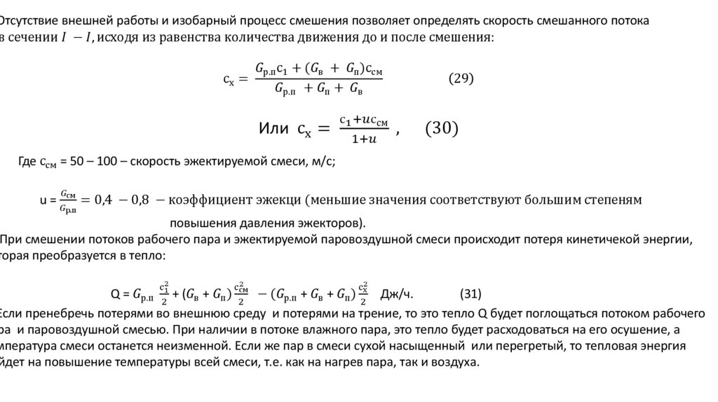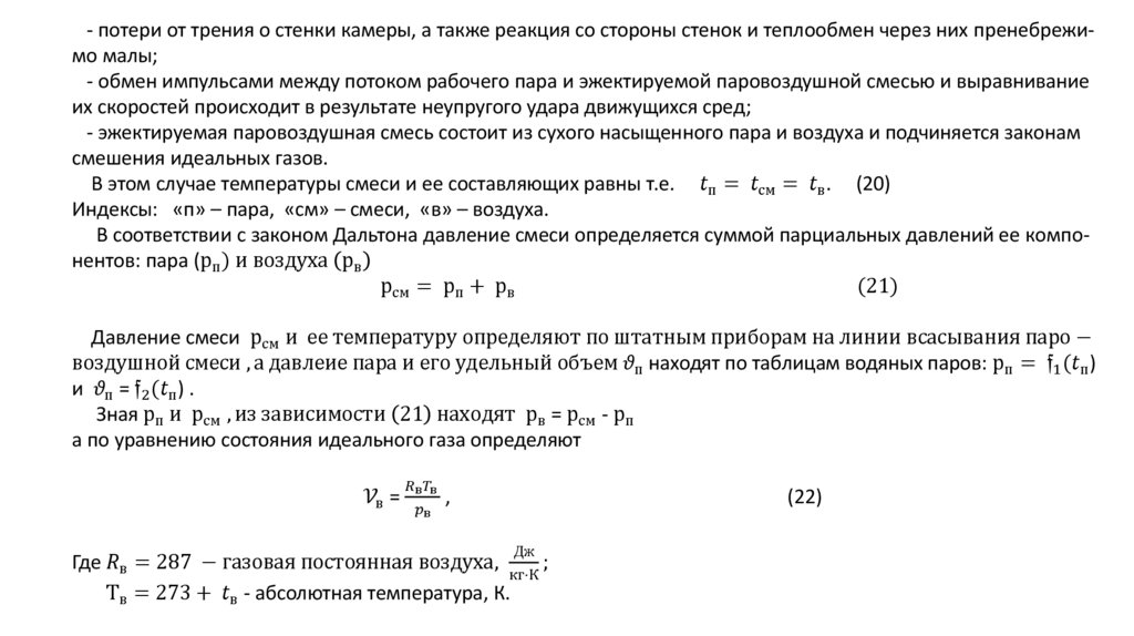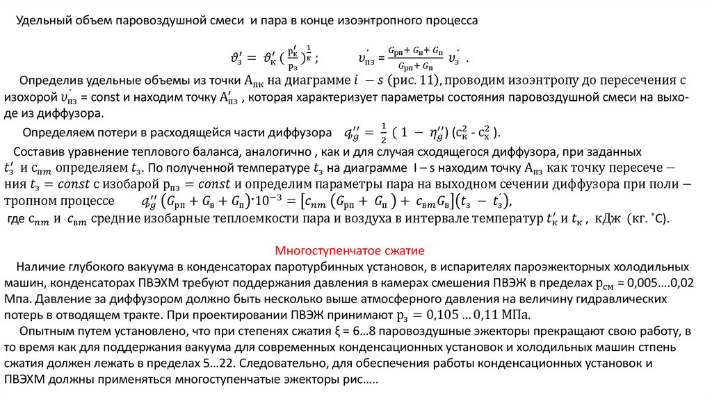 Рабочие процессы в паровоздушных эжекторах