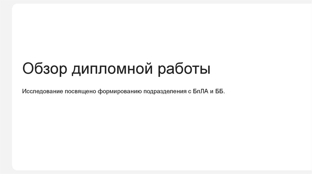 Обзор дипломной работыИсследование посвящено формированию подразделения с БпЛА и ББ.