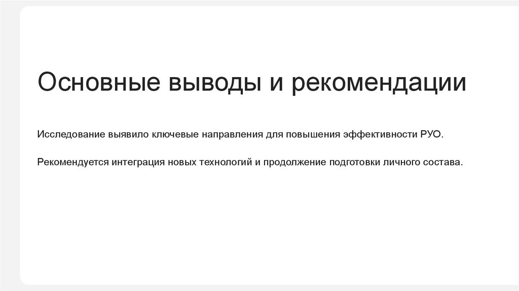 Основные выводы и рекомендацииИсследование выявило ключевые направления для повышения эффективности РУО.
