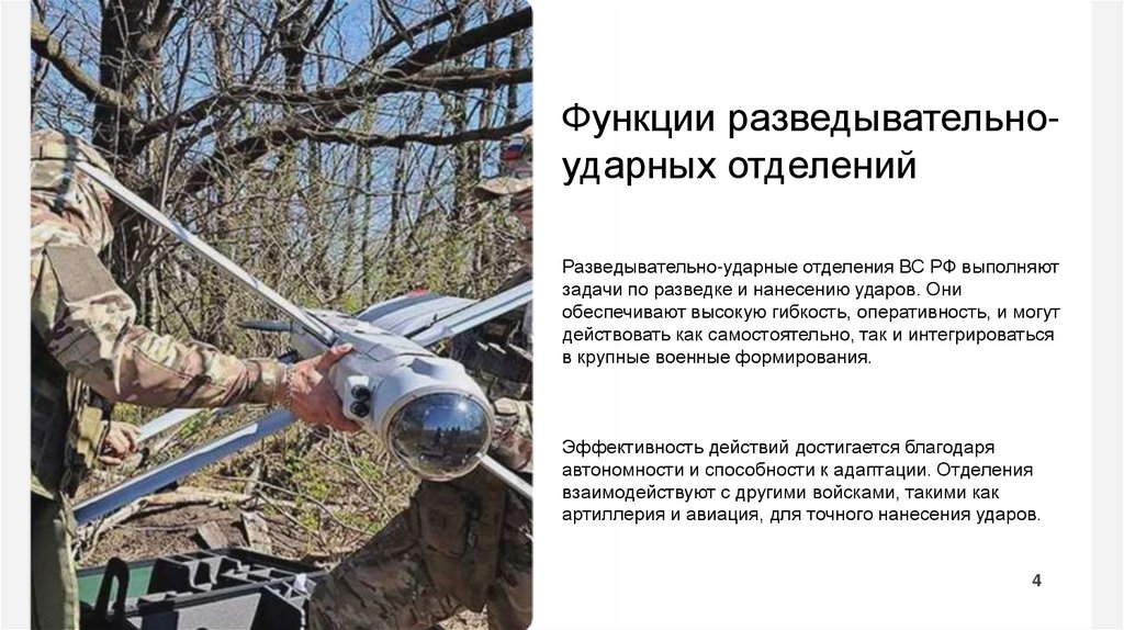 Функции разведывательноударных отделенийРазведывательно-ударные отделения ВС РФ выполняют