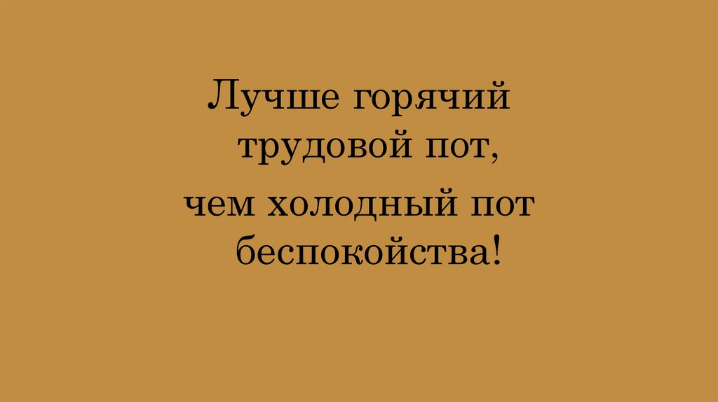 Лучше горячийтрудовой пот,