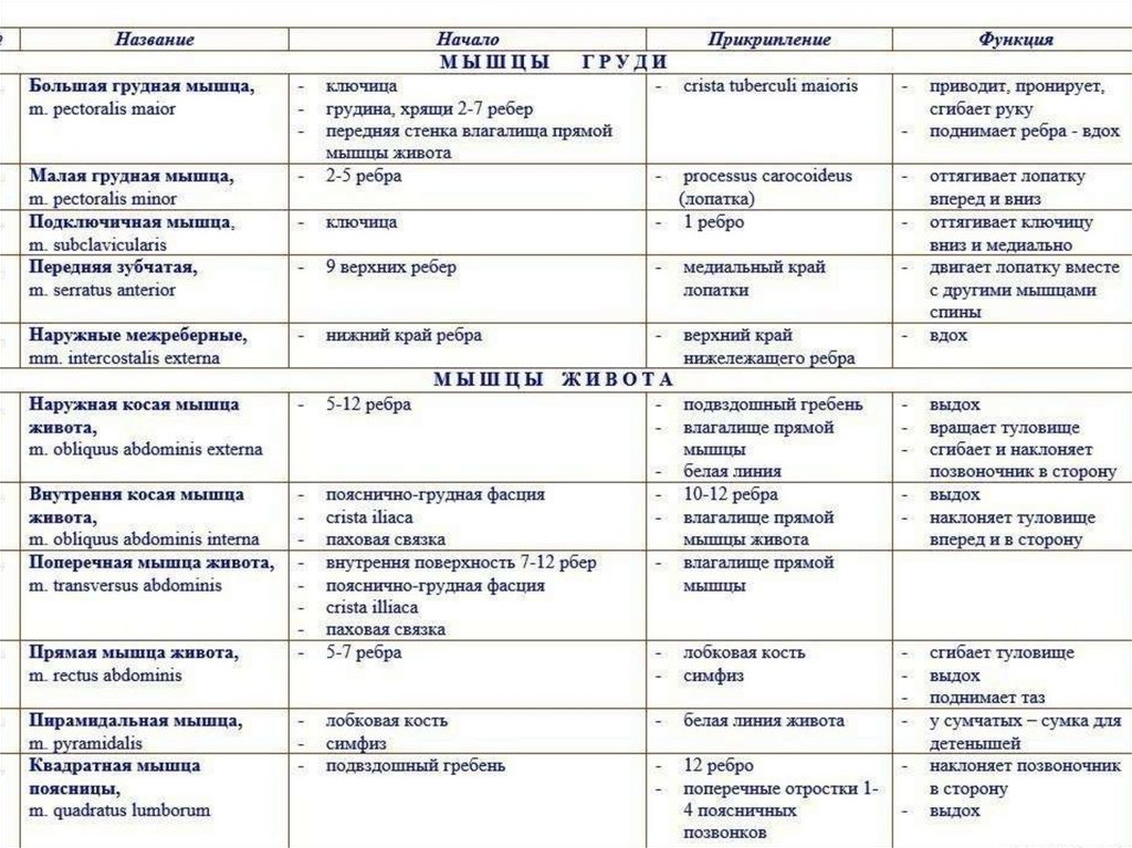 1. Мышцы -спины -груди -живота