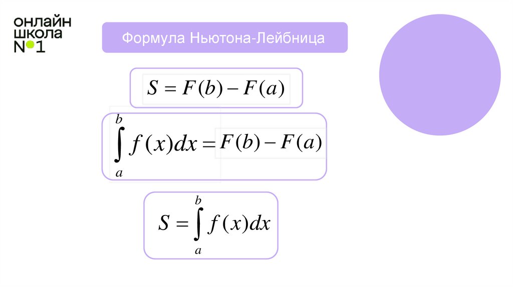 Формула Ньютона-ЛейбницаS F (b) F (a)