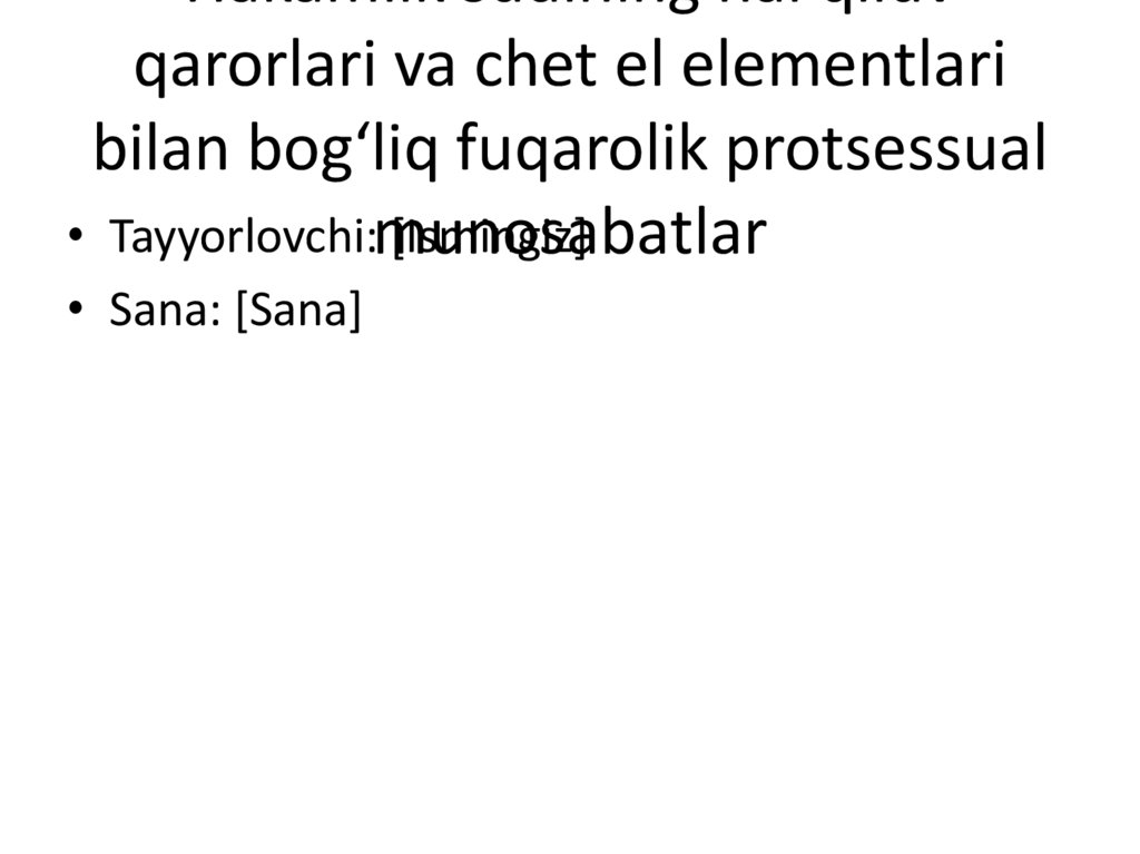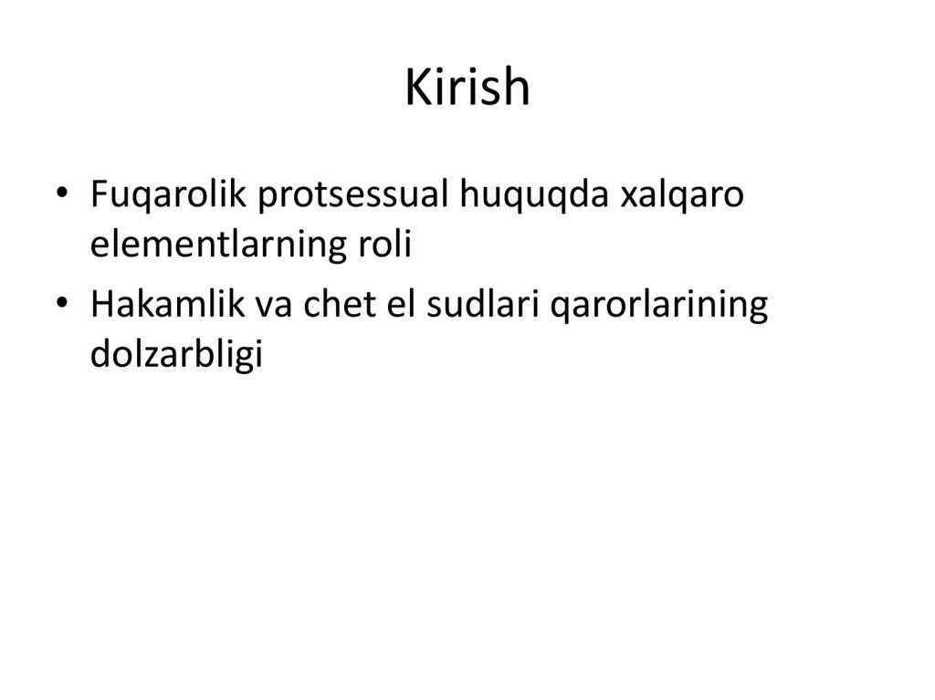 Kirish• Fuqarolik protsessual huquqda xalqaro