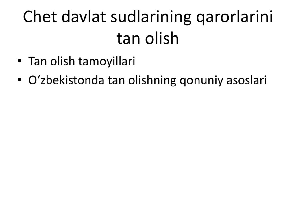 • O‘zbekistonda tan olishning qonuniy asoslari