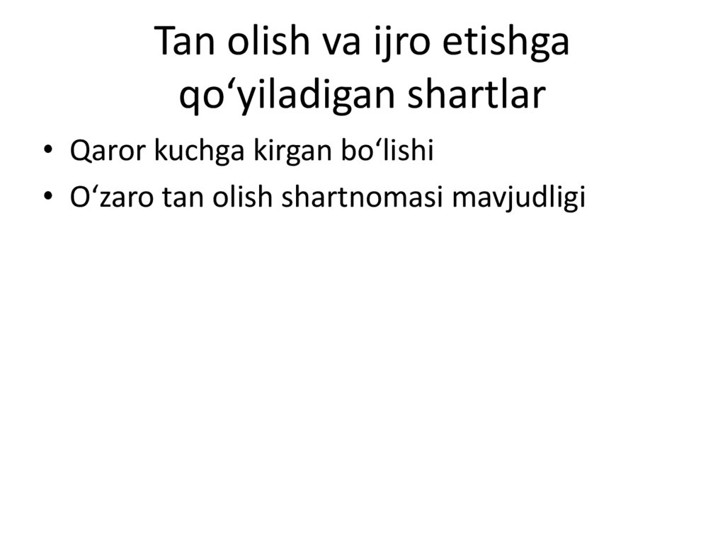 Tan olish va ijro etishgaqo‘yiladigan shartlar
