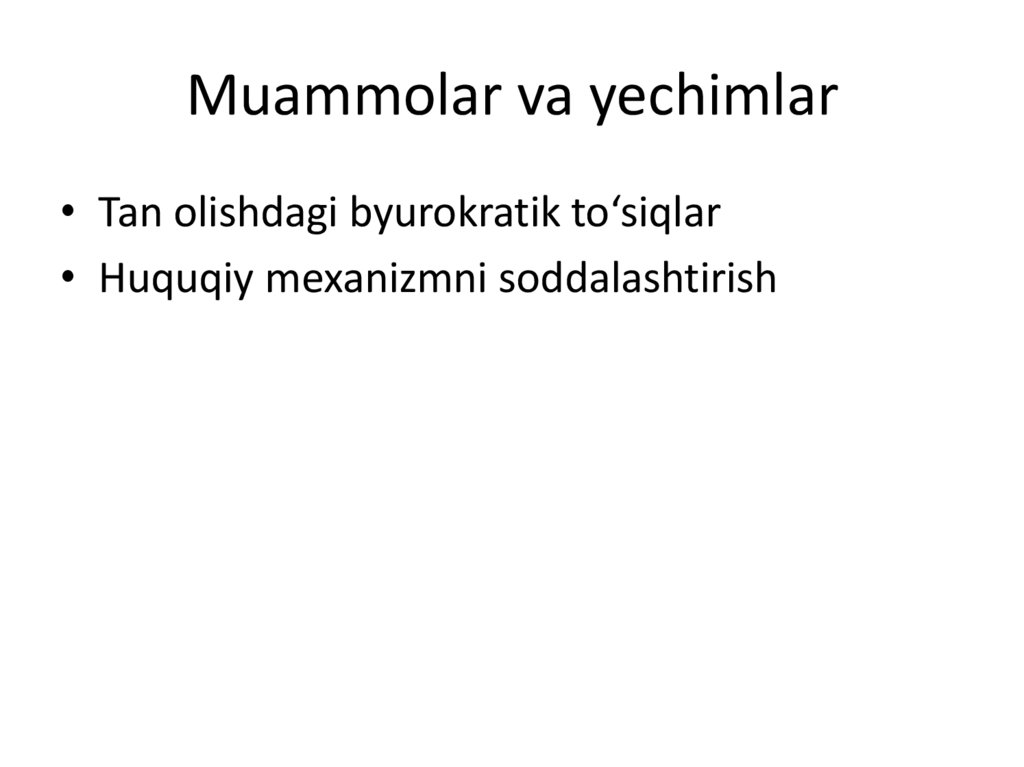 Muammolar va yechimlar• Tan olishdagi byurokratik to‘siqlar