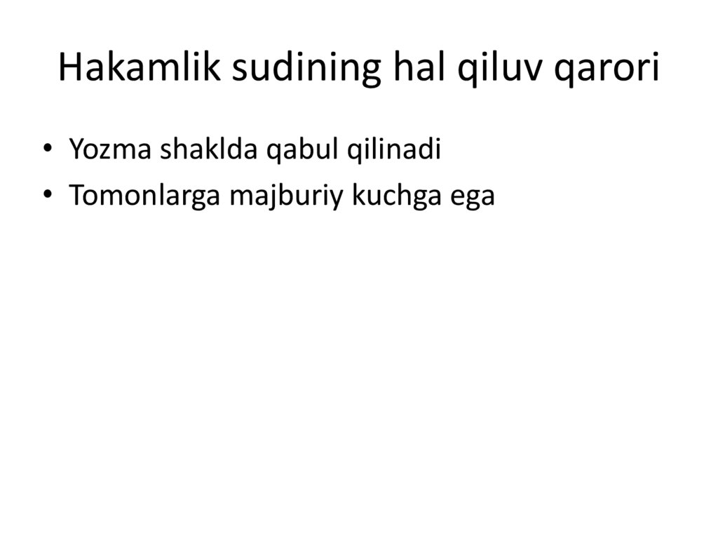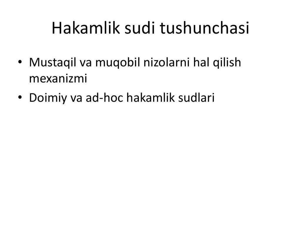 Hakamlik sudi tushunchasi• Mustaqil va muqobil nizolarni hal qilish