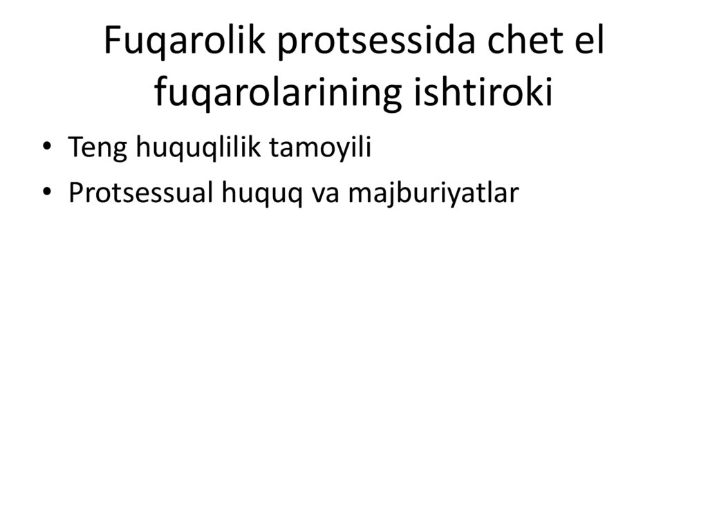 Fuqarolik protsessida chet elfuqarolarining ishtiroki