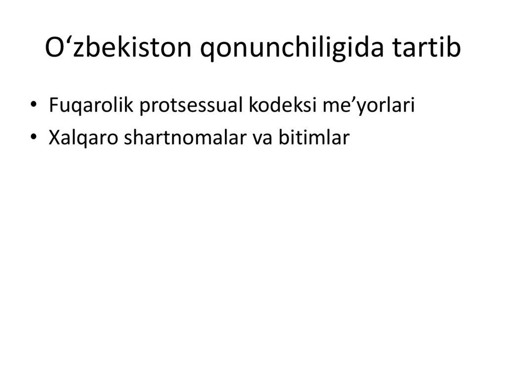 O‘zbekiston qonunchiligida tartib• Fuqarolik protsessual kodeksi me’yorlari