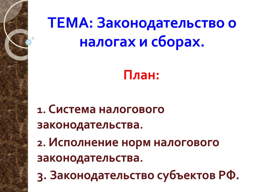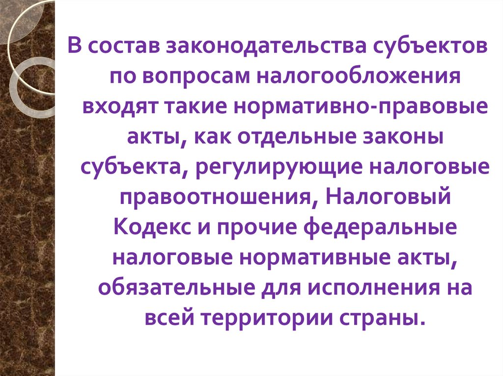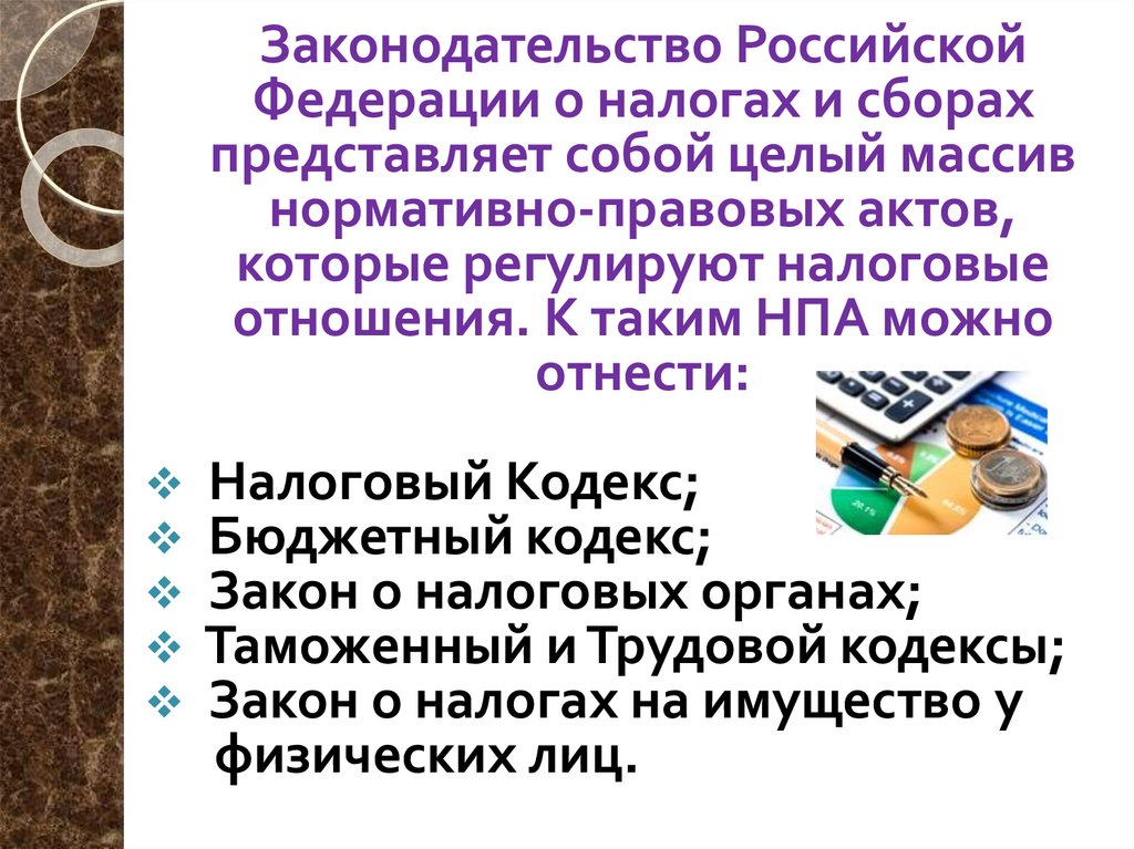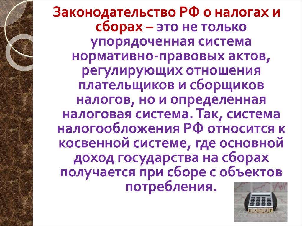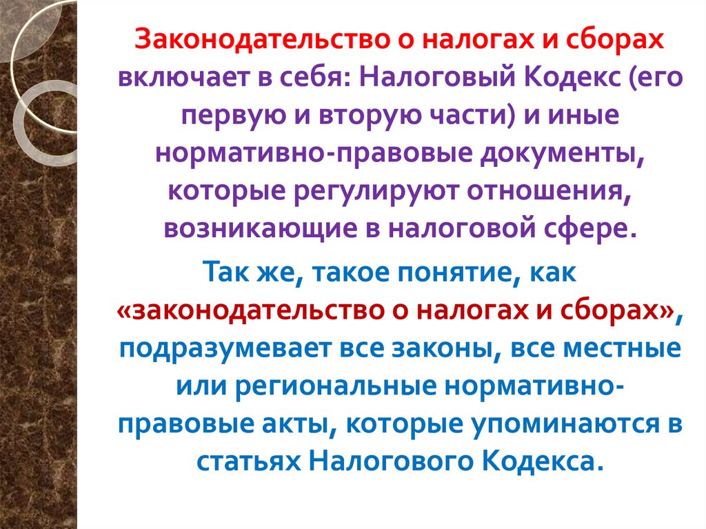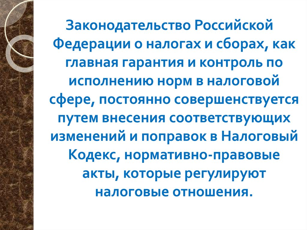 Законодательство РоссийскойФедерации о налогах и сборах, как
