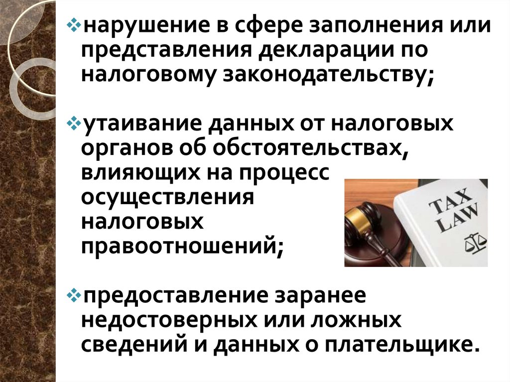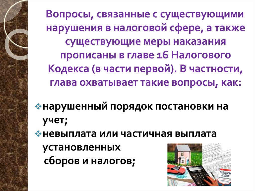 Вопросы, связанные с существующиминарушения в налоговой сфере, а также