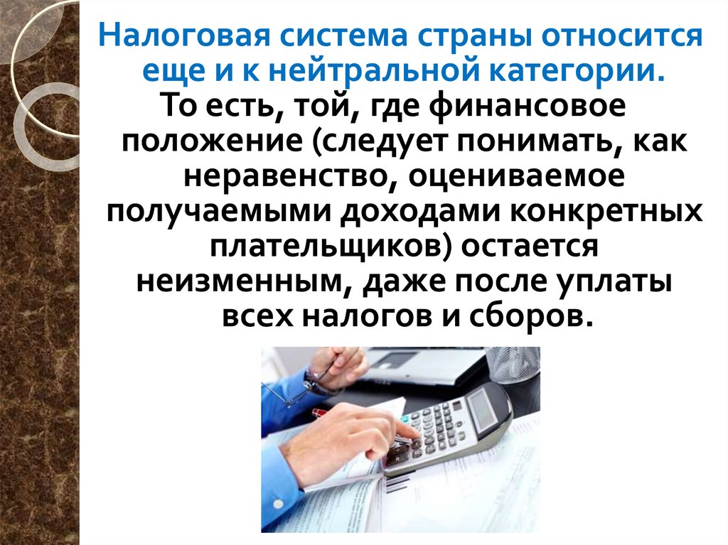 Налоговая система страны относитсяеще и к нейтральной категории.