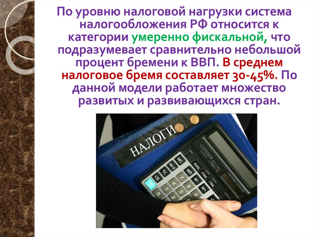 По уровню налоговой нагрузки системаналогообложения РФ относится к