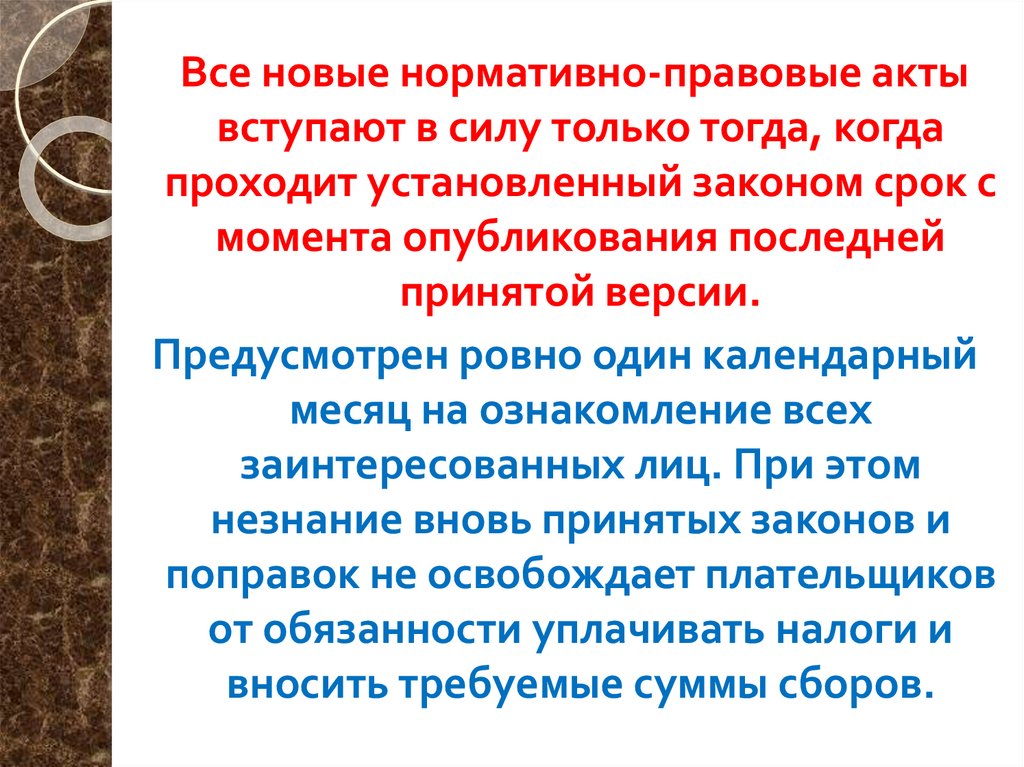 Все новые нормативно-правовые актывступают в силу только тогда, когда
