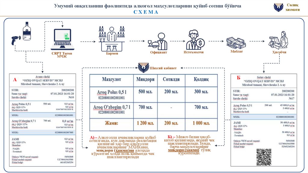 Умумий овқатланиш фаолиятида алкогол маҳсулотларини қуйиб сотиш бўйичаСХЕМА