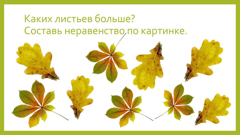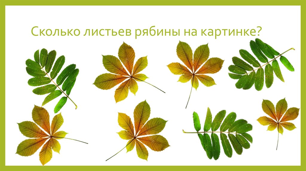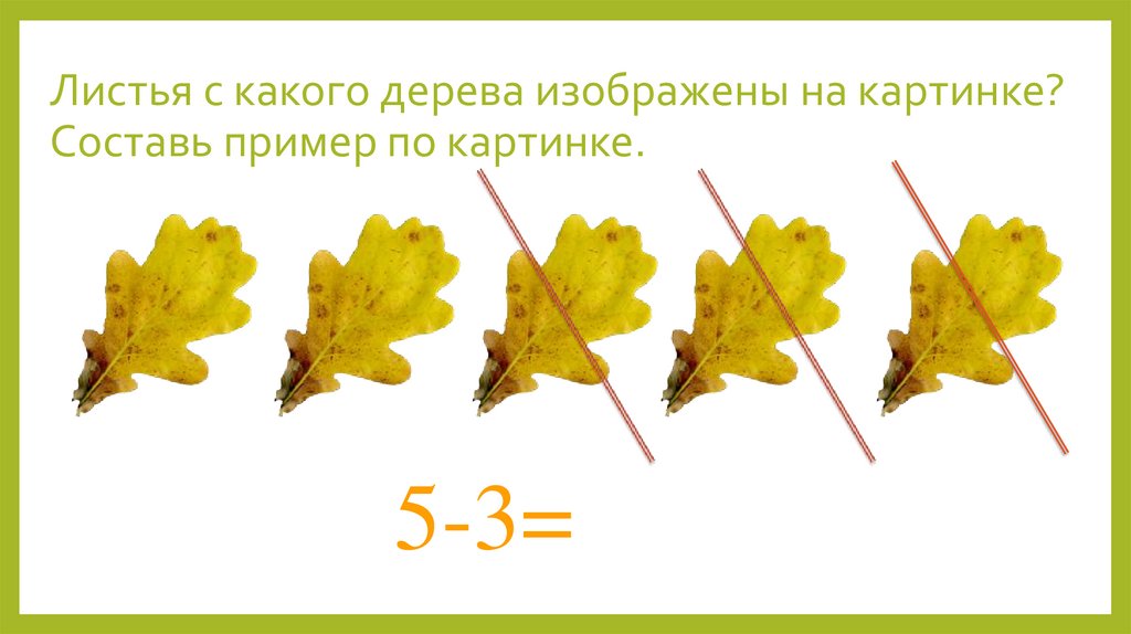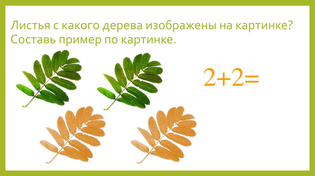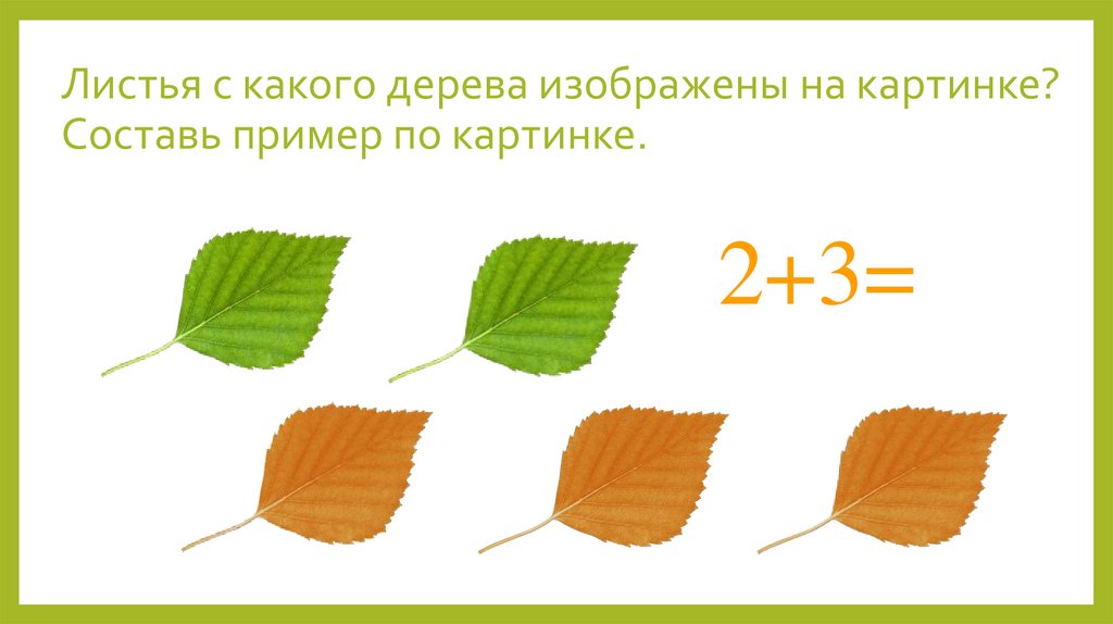 Листья с какого дерева изображены на картинке? Составь пример по картинке.