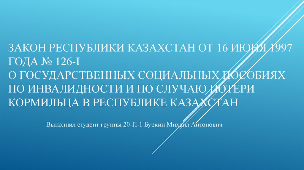 Закон Республики Казахстан от 16 июня 1997 года № 126-I О государственных социальных пособиях по инвалидности