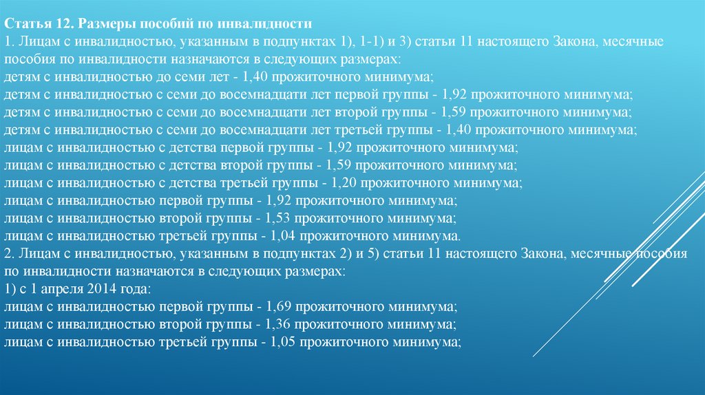 размера пособия, назначенного в соответствии со статьями 12 и 16 настоящего Закона.