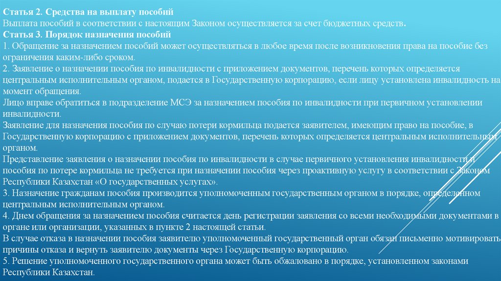 1. Граждане Республики Казахстан имеют право на получение государственных социальных пособий по