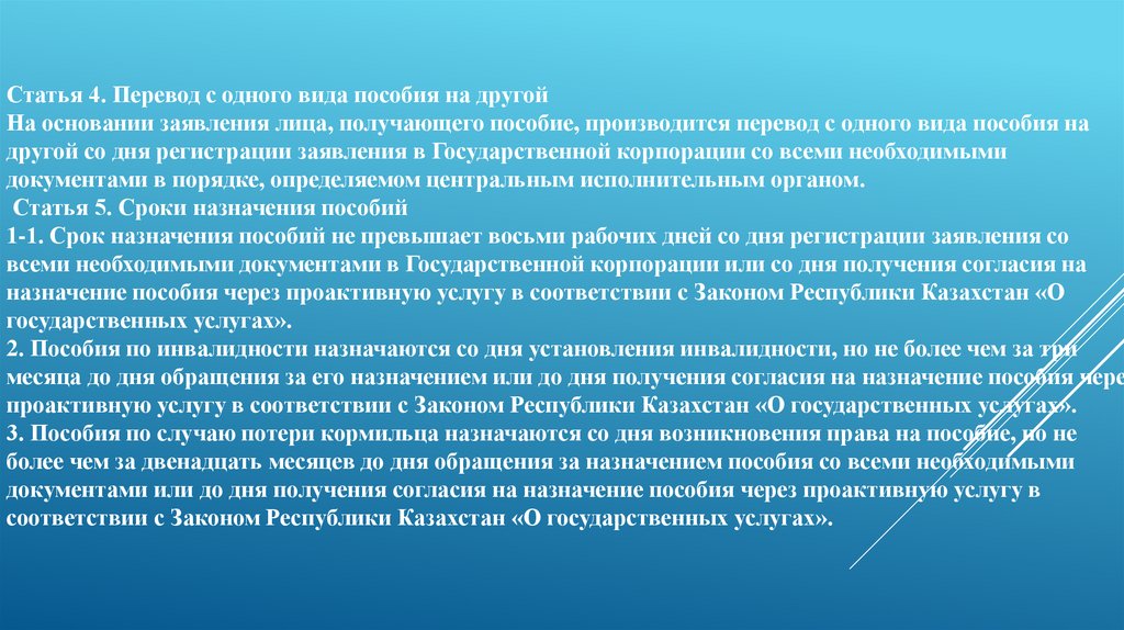 Статья 4. Перевод с одного вида пособия на другойНа основании заявления лица, получающего пособие, производится перевод с одного вида пособия на