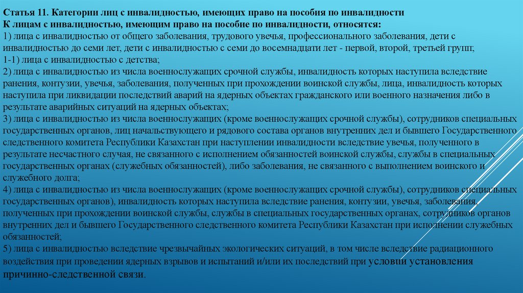 1. Закон Республики Казахстан от 16 июня 1997 года № 126-I О государственных социальных пособиях по инвалидности и по случаю