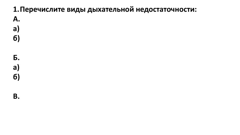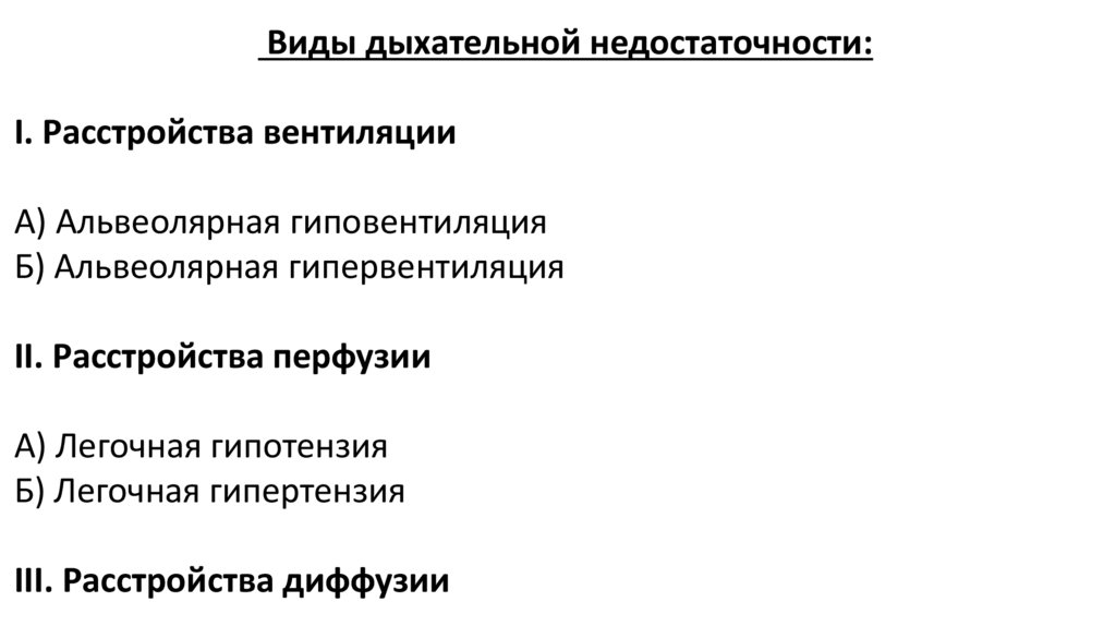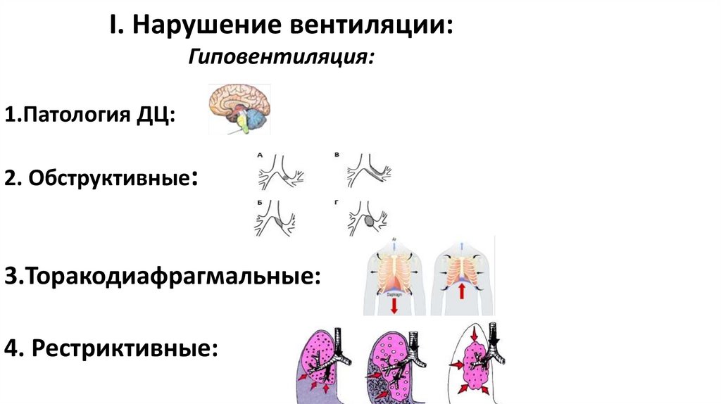 Виды дыхательной недостаточности:I. Расстройства вентиляции