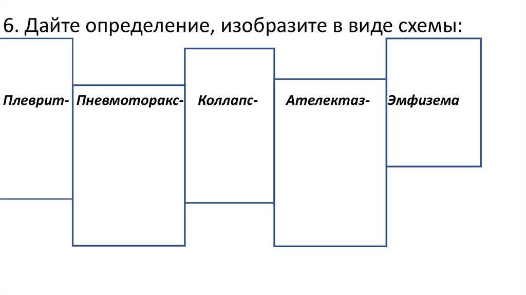 6. Дайте определение, изобразите в виде схемы:Плеврит- Пневмоторакс- Коллапс-