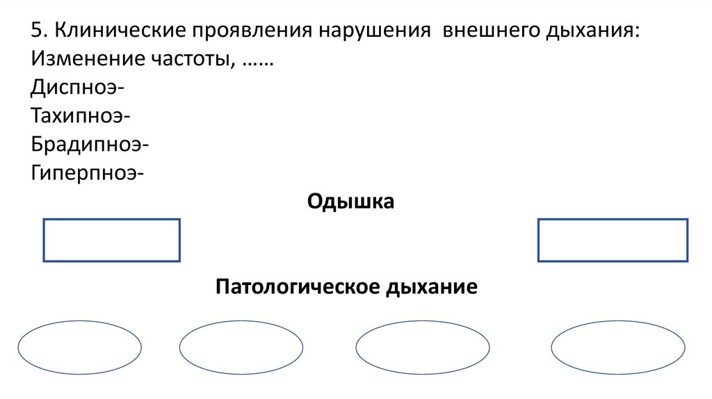 5. Клинические проявления нарушения внешнего дыхания:Изменение частоты, ……
