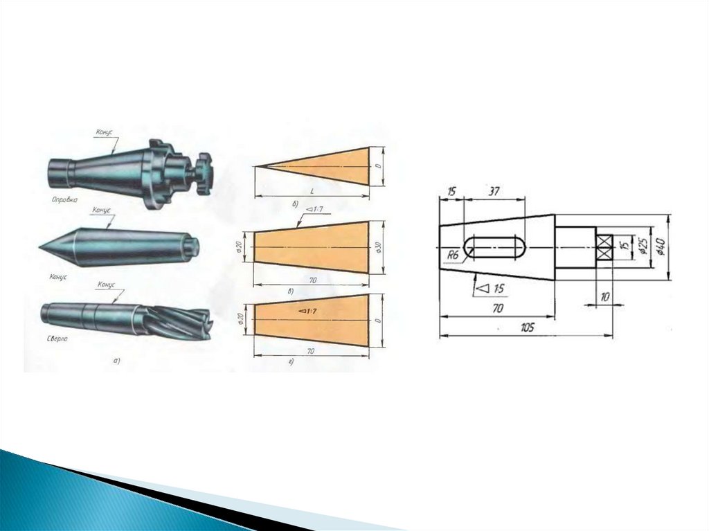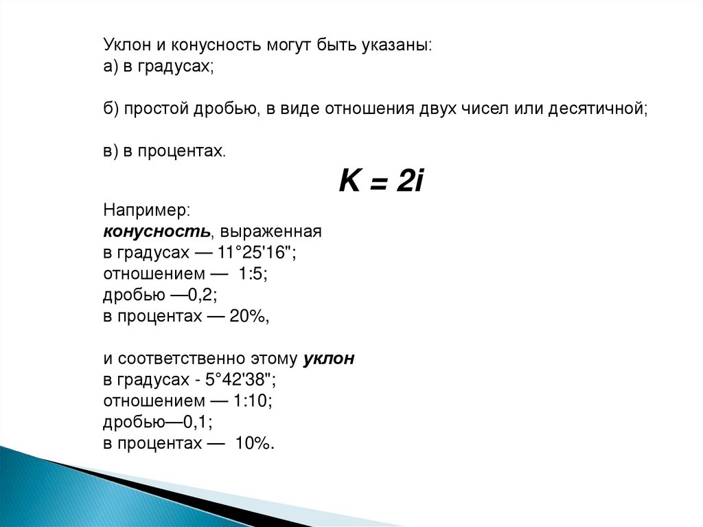 2. Конусность - это отношение разности диаметров двух нормальных сечений кругового конуса к расстоянию между ними K = D/L K =