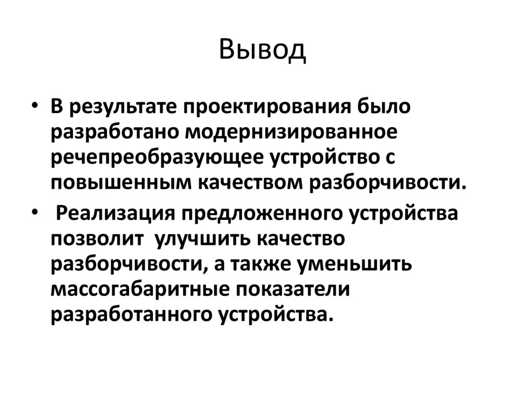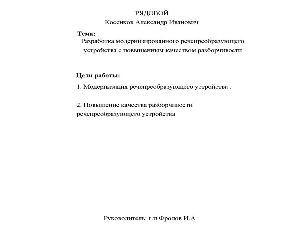 Разработка модернизированного речепреобразующего устройства с повышенным качеством разборчивости